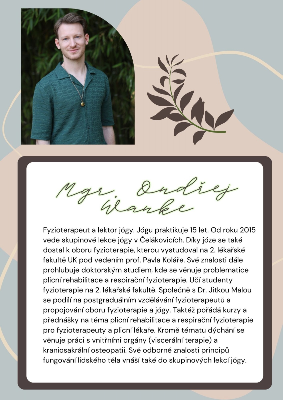 - Praktická část – bezpečné a účinné techniky, které pomáhají uvolnit napětí, zvyšují stabilitu a podporují zdravé držení těla.
